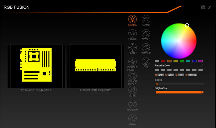 AORUS RGB Memory supports a variety of lighting modes. Some of the lighting modes are only for the AORUS RGB Memory. Color strobe, Cascade, Color Cascade, Droplet and Color Droplet are the new modes that adds unique style to your system.