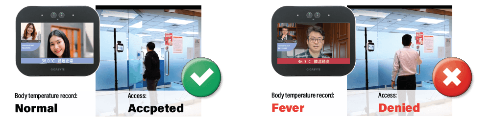 Using state-of-art facial recognition and temperature screening technology at the entrance of the open space. When detected an unauthorized or abnormal temperature, access permission won't be given.