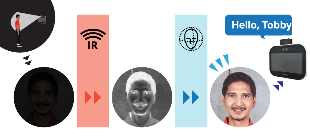 7-inch AIO facial recognition edge device, with RGB and IR lenses all in this single device.