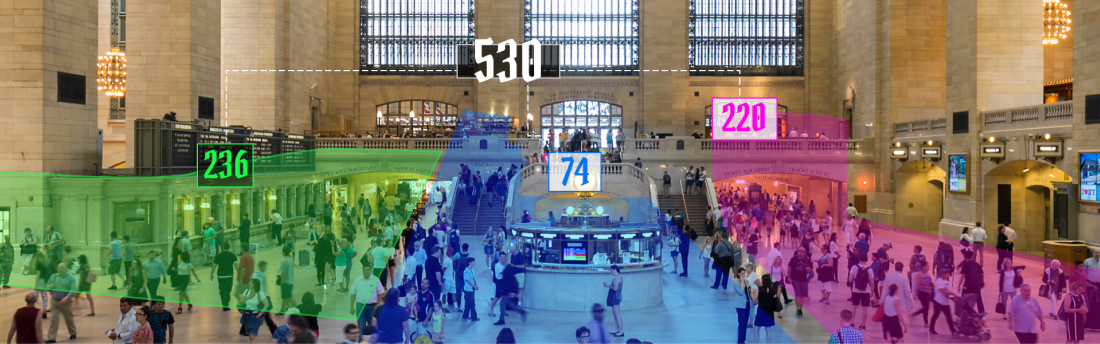 The system monitors high-traffic areas like stations and public places, providing daily traffic statistics and insights to optimize the environment and infrastructure.