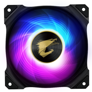 - The water block and fan feature gradient lighting, and the ARGB fan lighting can be synchronized with other AORUS devices through GCC (GIGABYTE Control Center).